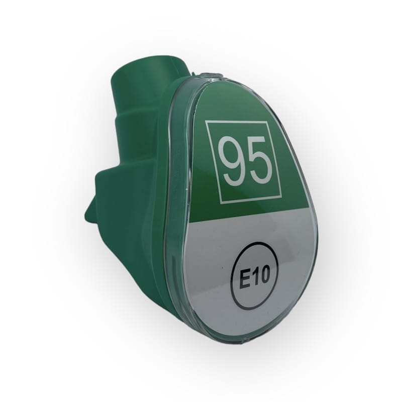 Osłona reklamowa zielona na pistolet benzynowy Pb95 E10 do samochodów osobowych.