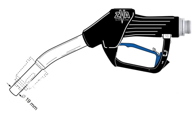 Pistolet nalewczy ZVA Slimline AdBlue HV z wylewką o średnicy 19mm.