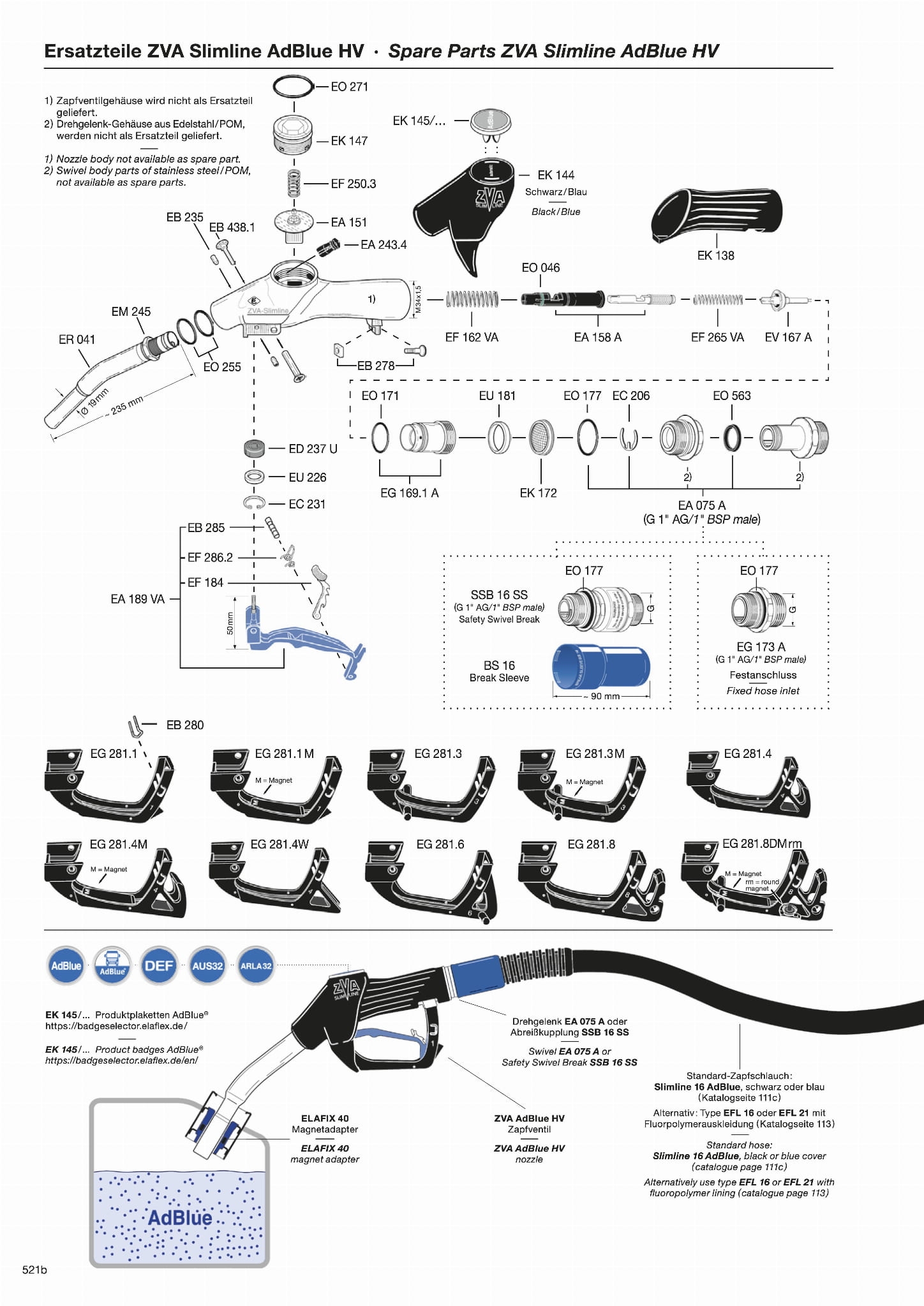 - ZVA AdBlue 4 - Przyłącze do węża: gwint zewnętrzny 1"; Osłona dźwigni nr 4 (na hak)