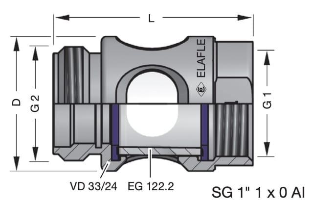 Wziernik Elaflex SG1" GW/GZ DN25 - przeziernik paliwa montowany na wężu przed pistoletem lub na dystrybutorze przed wyjściem węża.